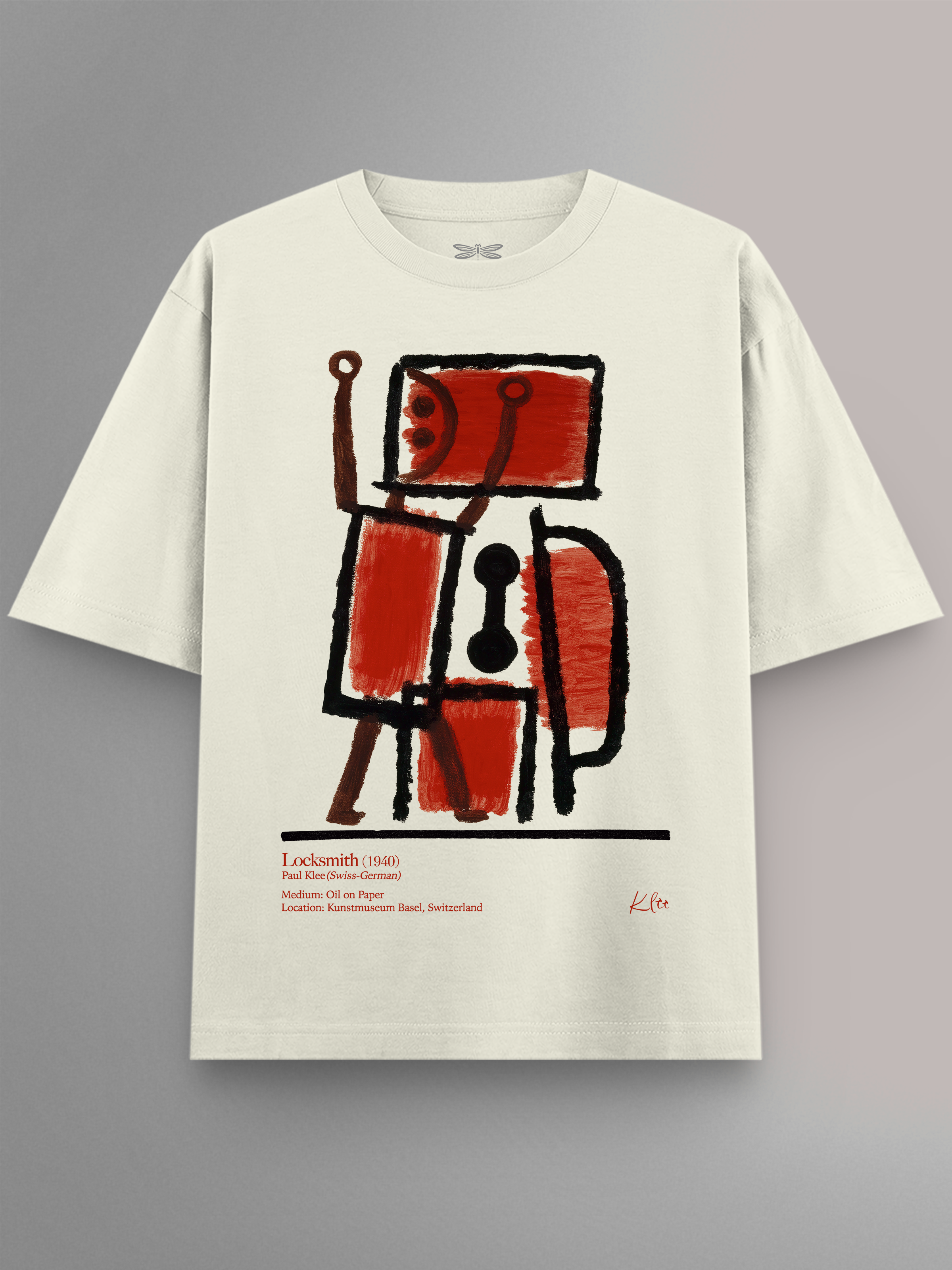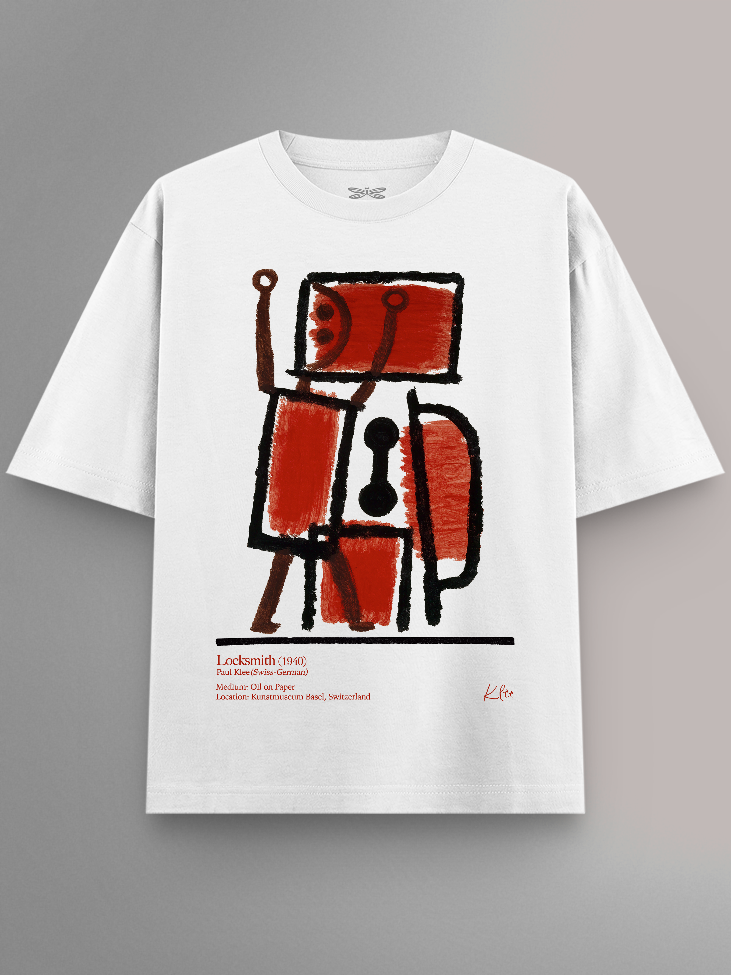 Product features Locksmith (1940) by Paul Klee, Swiss-German modernist known for blending abstraction, symbolism & geometry. Klee taught at the Bauhaus and explored color theory in depth. The painting uses bold shapes in red and black, evoking a symbolic “unlocking” motif. It originally comes from Kunstmuseum Basel, reflecting Klee’s close ties to Swiss art institutions. Presented in a refined museum-label design as part of the Art Movement Collection.