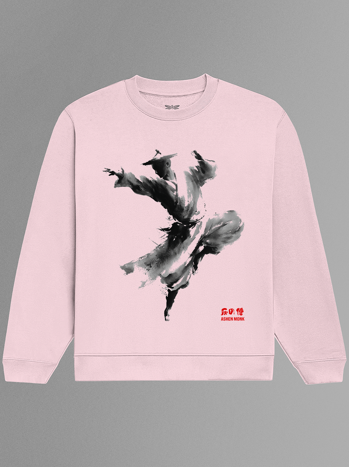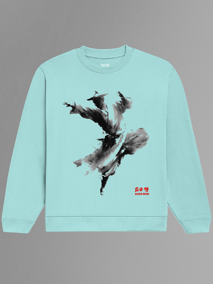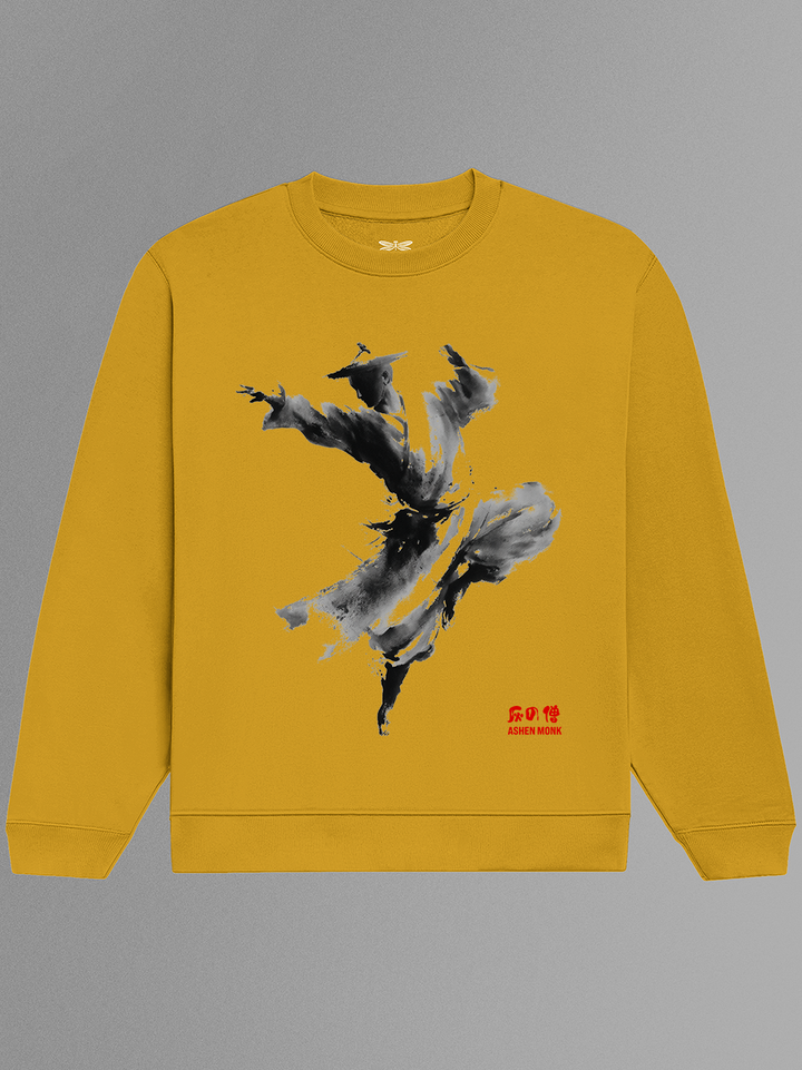 Product features a lone monk frozen mid-movement, robes sweeping like smoke across the canvas — rendered in textured sumi-e strokes that blur the line between form and spirit. The phrase “灰の僧” (Ashen Monk) evokes a figure shaped by fire and silence — a warrior of inner stillness, not spectacle. A design that channels calm intensity, discipline, and the beauty of emptiness. Part of the Sumi-e Collection.