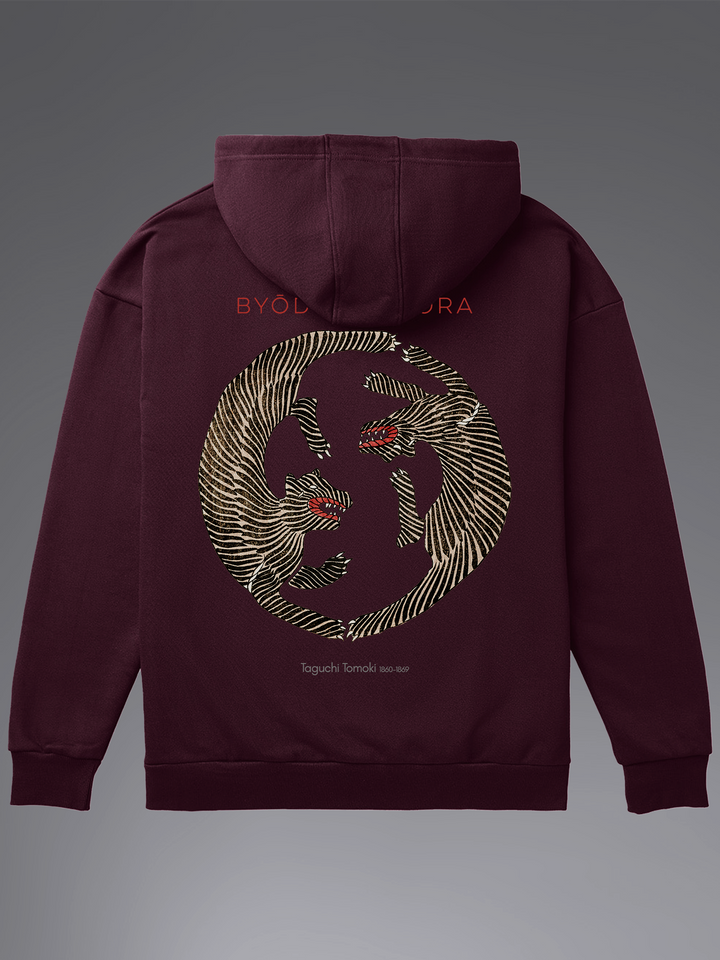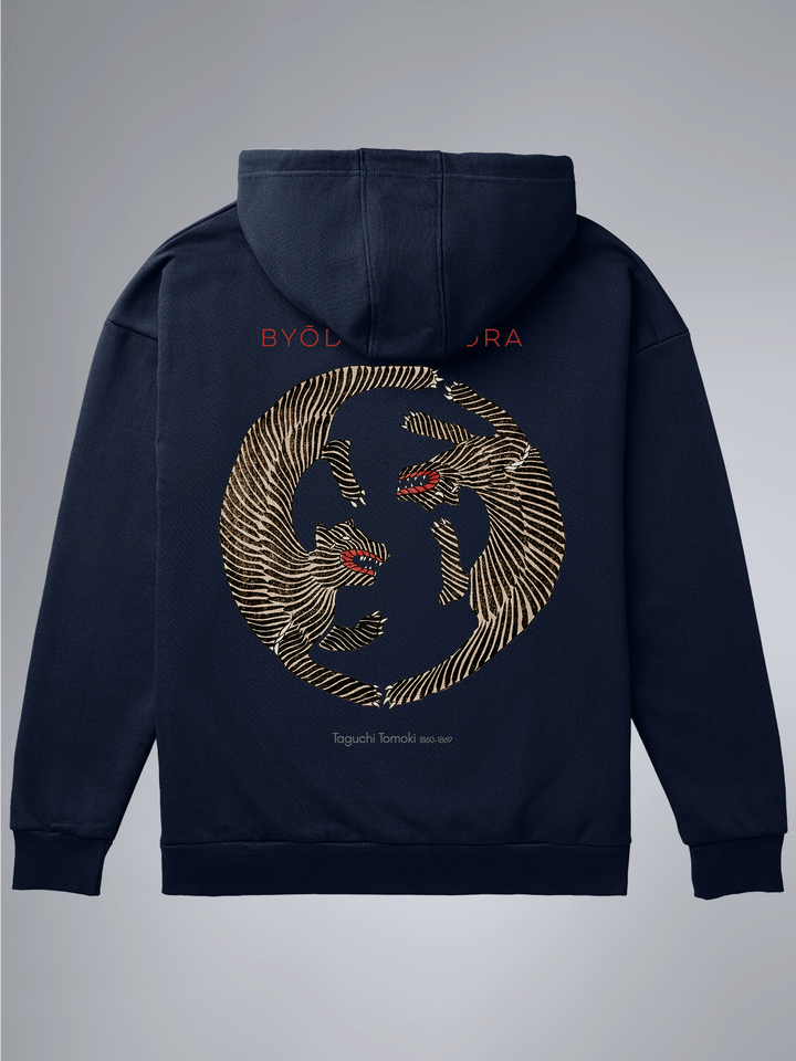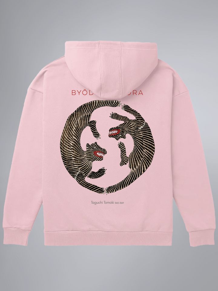 Product showcases Byōdō no Tora (平等の虎), or Tigers of Balance, created by Taguchi Tomoki in the 1860s. Two striped tigers clash in a circular rhythm, their mirrored bodies evoking the harmony of opposites. The bold lines, stark contrasts, and flowing symmetry reflect the enduring influence of Ukiyo-e.