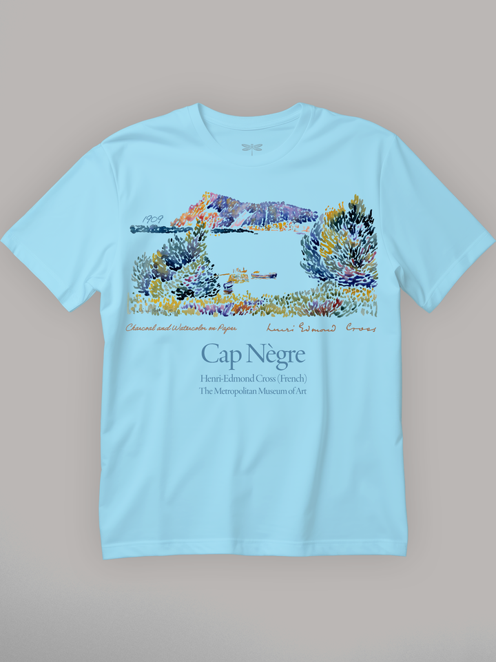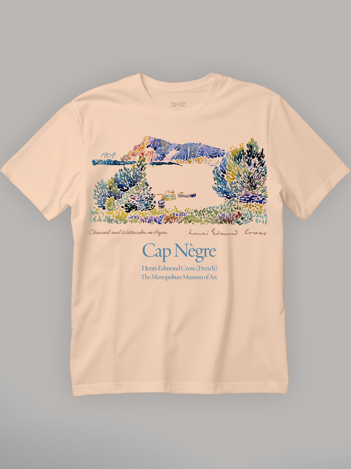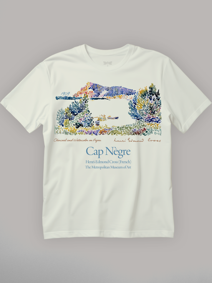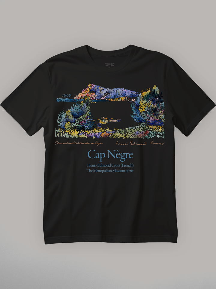 Product features Cap Nègre (1909) by Henri-Edmond Cross, a leading Neo-Impressionist painter celebrated for his luminous color studies. This watercolor captures the French Riviera in radiant hues, using short, rhythmic strokes that dissolve the landscape into pure light and color. Cross’s technique exemplifies the transition from Pointillism to a freer, more expressive style that inspired Matisse and the Fauves. Housed in The Metropolitan Museum of Art, New York. Part of the Art Movement Collection.