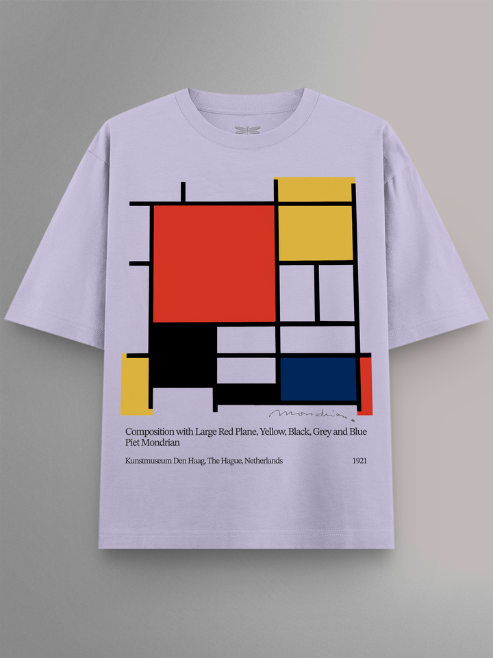 Product features Composition with Large Red Plane, Yellow, Black, Grey and Blue (1921) by Piet Mondrian, a pioneer of abstract art and co-founder of De Stijl. In this work, Mondrian reduced forms to pure geometry and color, stripping away representation to explore harmony through opposites. It was purchased in 1921 by Jo Steijling, funding Mondrian’s move to a larger Parisian studio. The painting is oil on canvas, sized 59.5 × 59.5 cm, and housed at the Kunstmuseum Den Haag, The Hague. Part of the Art Movement Collection.