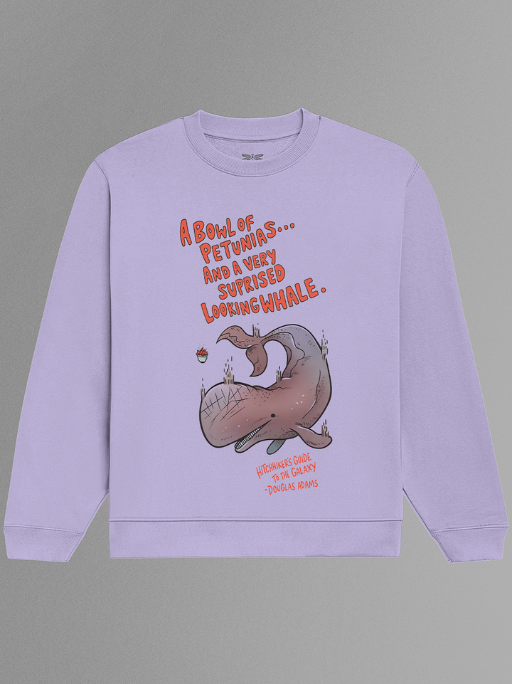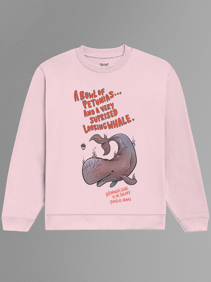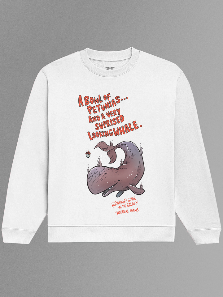 Product features a whale tumbling through the air, paired with a bowl of petunias — a visual pulled straight from one of Hitchhiker’s Guide to the Galaxy’s most brilliantly absurd moments. The warped lettering and falling motion capture Douglas Adams’ unique brand of cosmic chaos and philosophical comedy. Part of the Counterculture Books Collection.