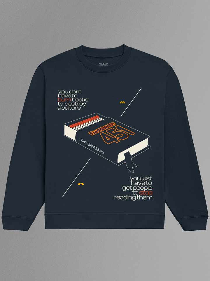 Product features a stylized book illustrated as a matchbox, complete with red-tipped matches, drawing from Ray Bradbury’s dystopian classic. The quote — “You don’t have to burn books to destroy a culture…” — wraps the design with quiet urgency. A stark, modernist tribute to censorship, complacency, and the slow death of curiosity. Part of the Counterculture Books Collection.