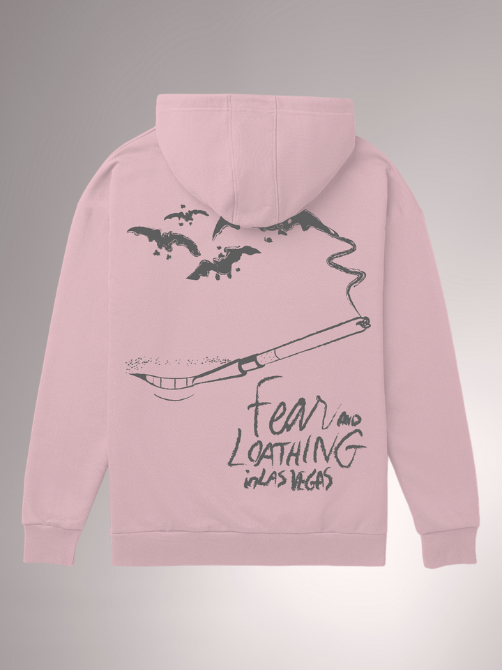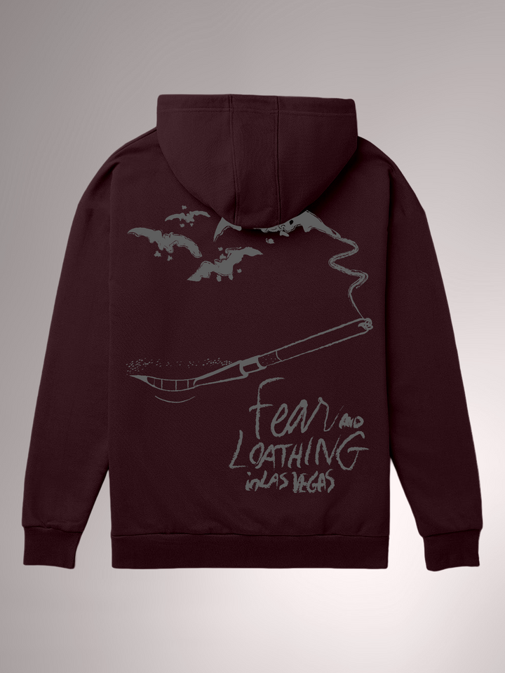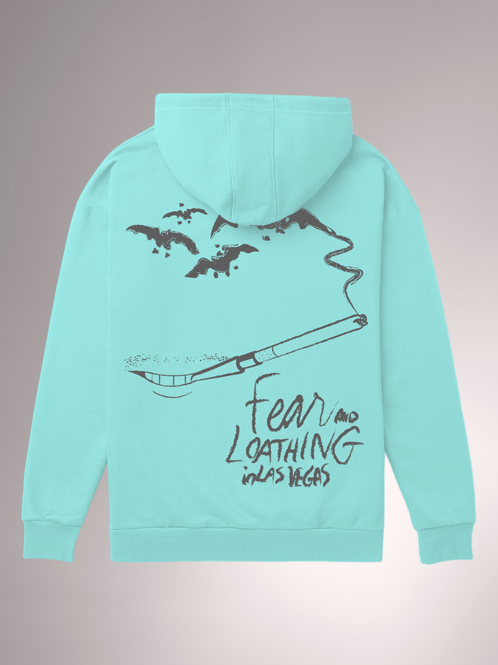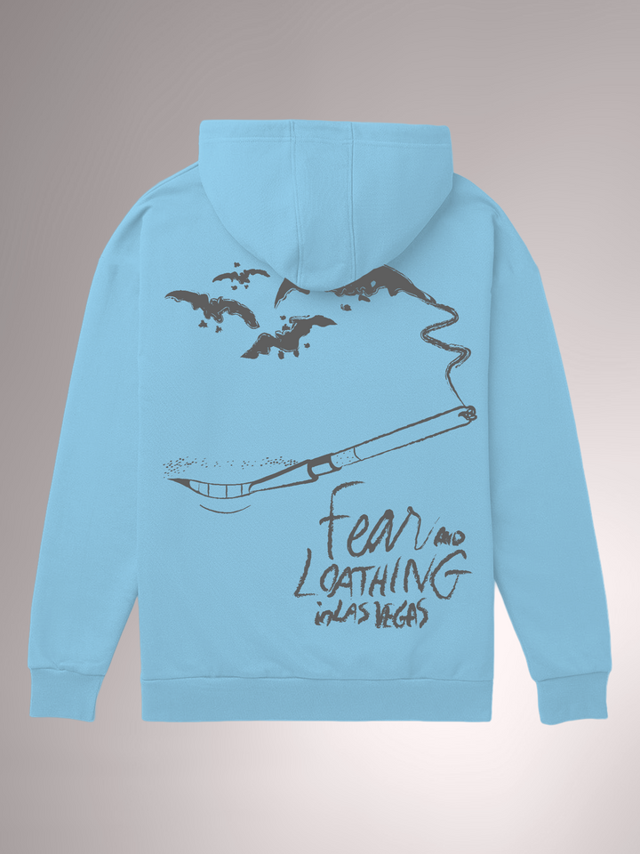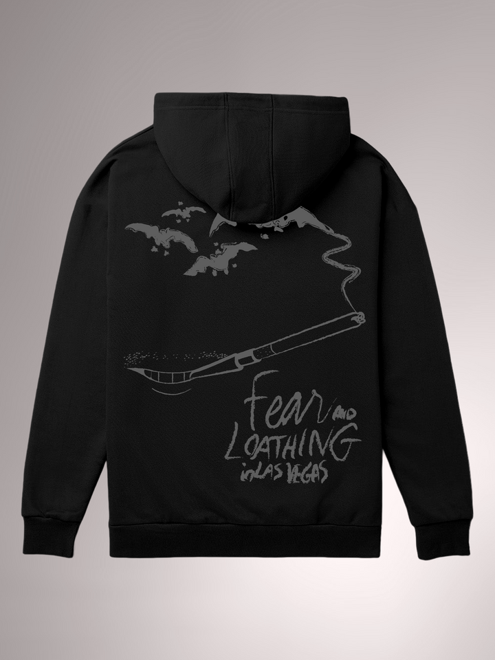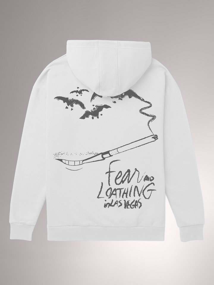 Product features a surreal cigarette trail morphing into a swarm of bats — a direct nod to the hallucinatory madness of Fear and Loathing in Las Vegas. Rendered in scratchy, sketched ink, the design captures the film’s signature chaos, altered perception, and drug-fueled desert delirium. Part of the Cult Movies Collection.