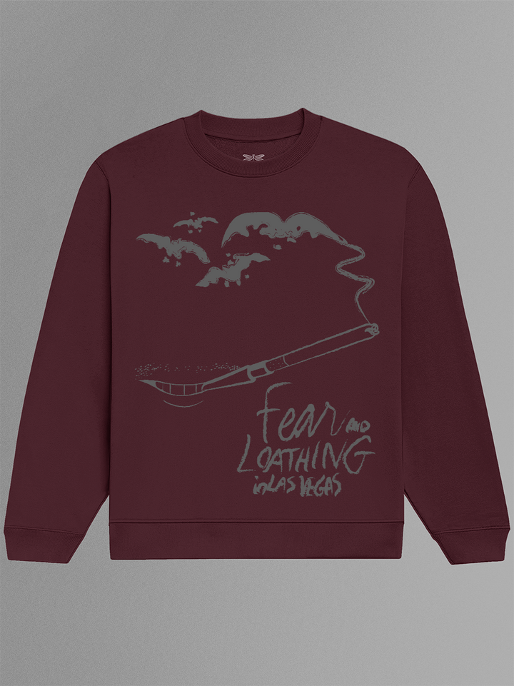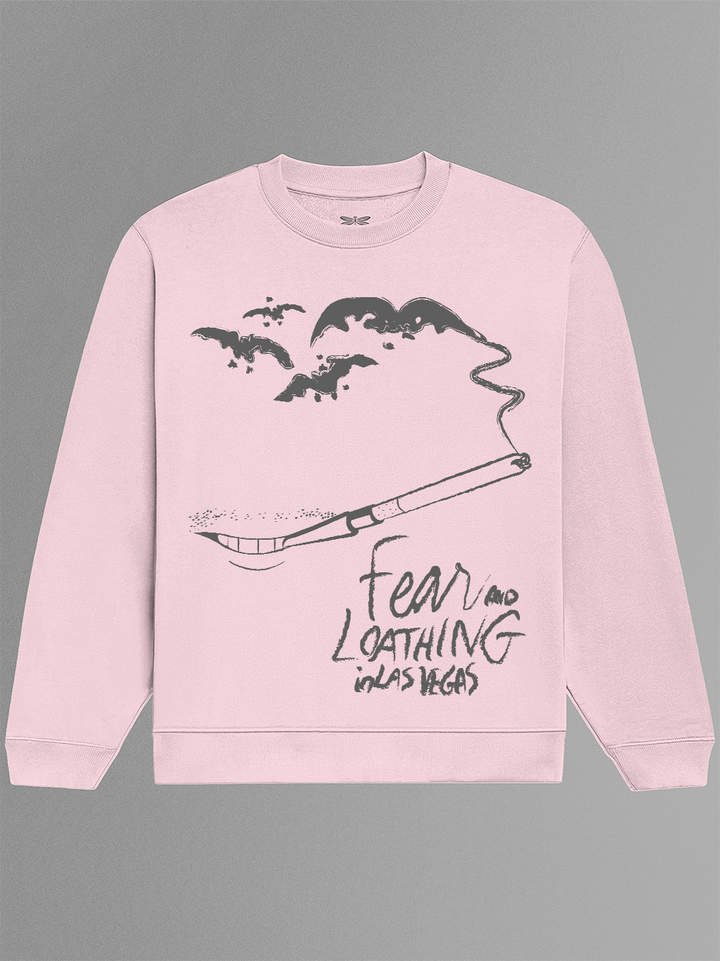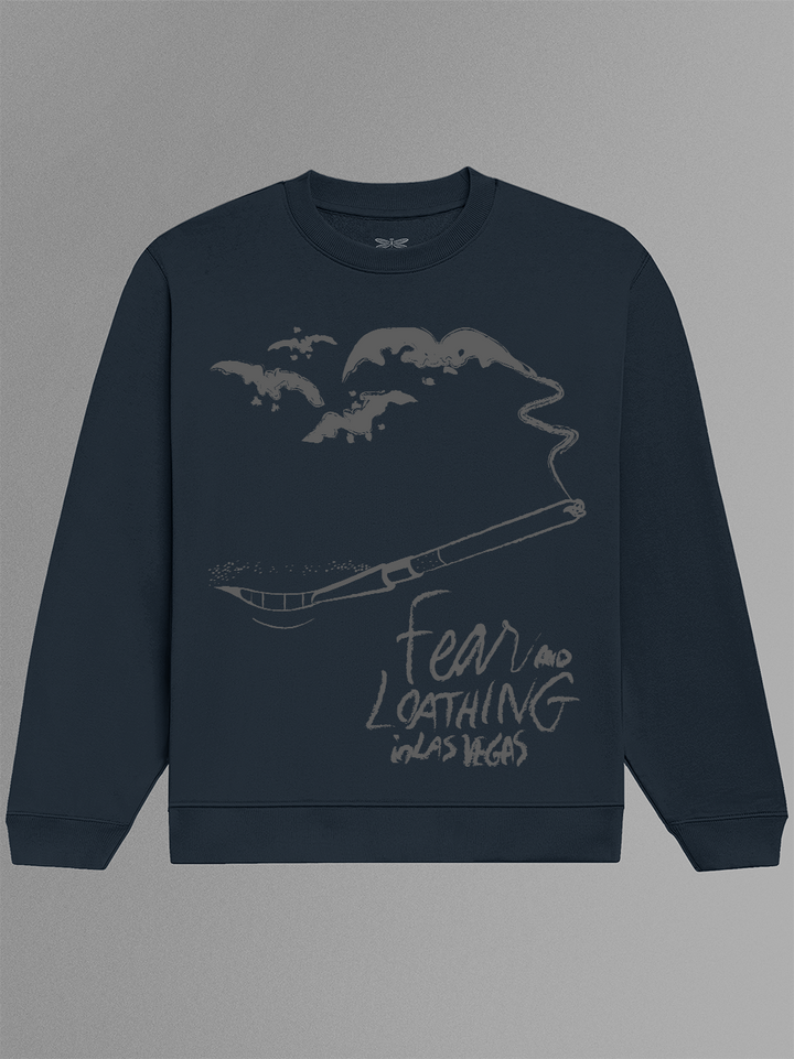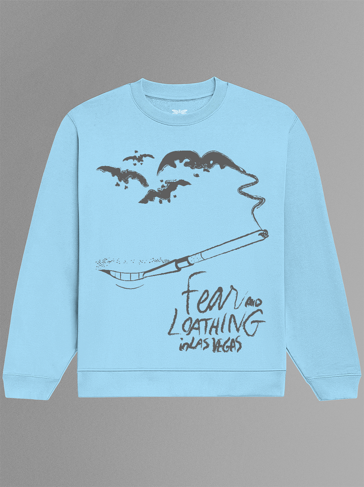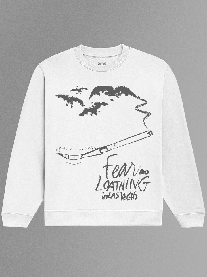 Product features a surreal cigarette trail morphing into a swarm of bats — a direct nod to the hallucinatory madness of Fear and Loathing in Las Vegas. Rendered in scratchy, sketched ink, the design captures the film’s signature chaos, altered perception, and drug-fueled desert delirium. Part of the Cult Movies Collection.