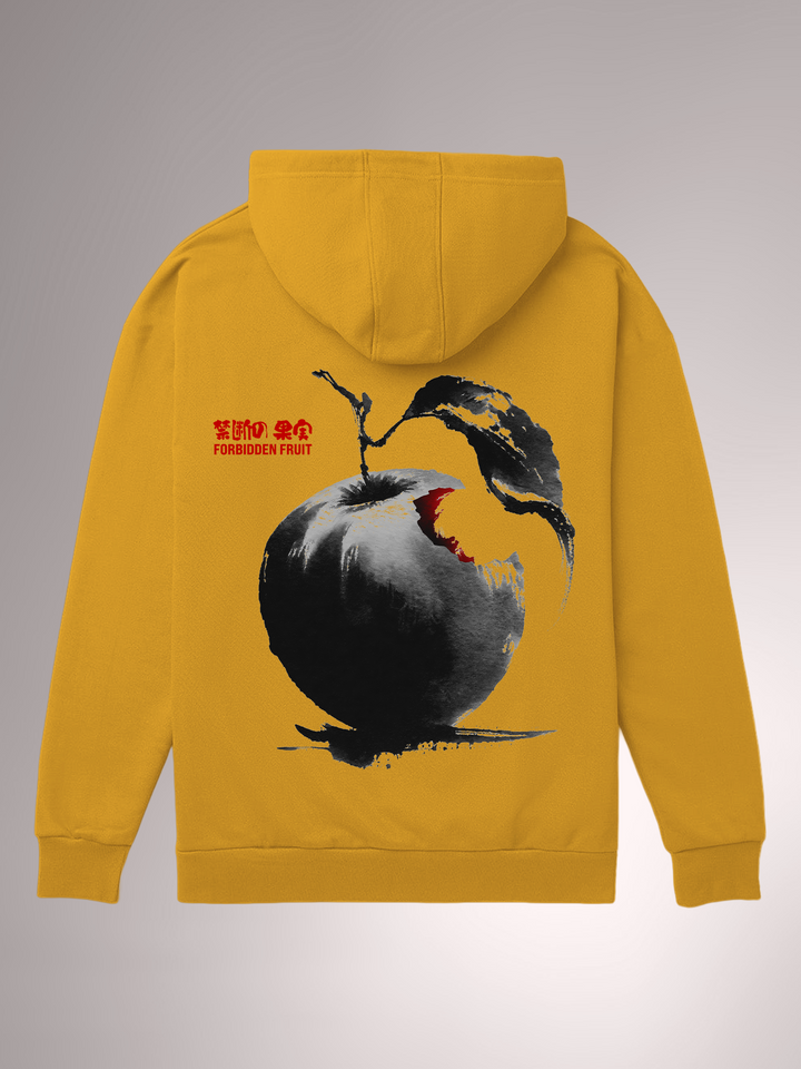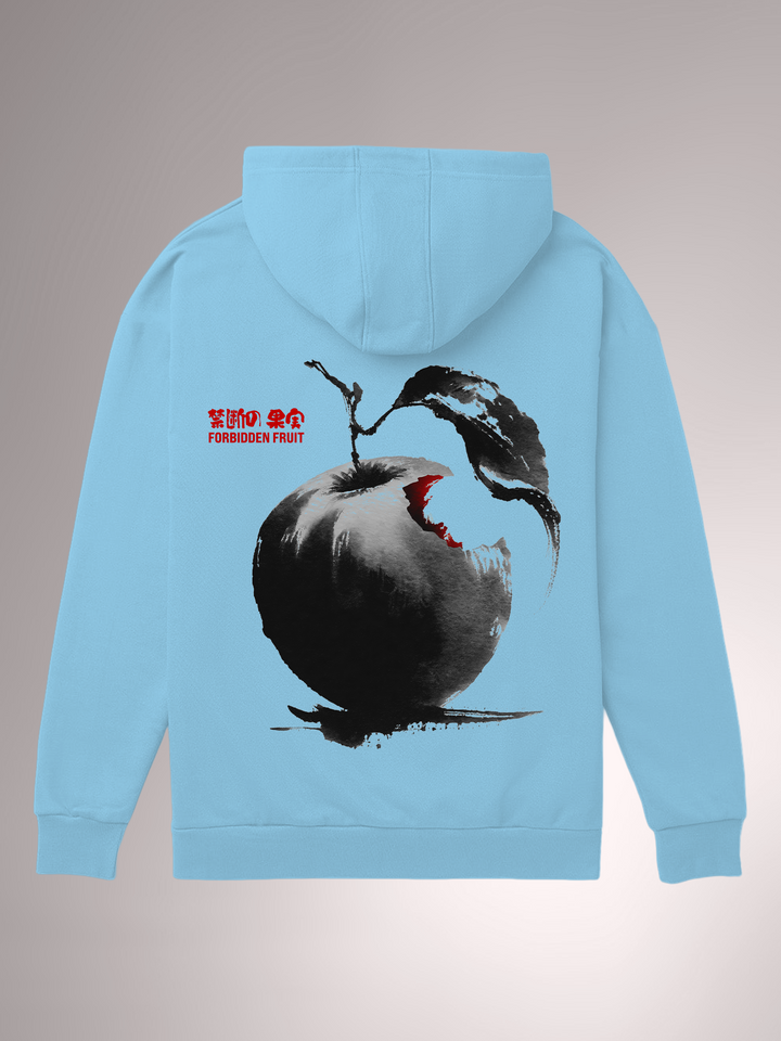 Product features a solitary ink-brushed apple with a single bite taken — stark, still, and heavy with meaning. The phrase “禁断の果実” (Forbidden Fruit) nods to temptation, desire, and the irreversible pull of the unknown. A crimson wound contrasts the quiet sumi-e texture, turning the fruit into both symbol and statement. Part of the Sumi-e Collection.