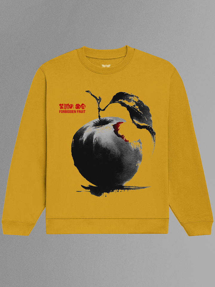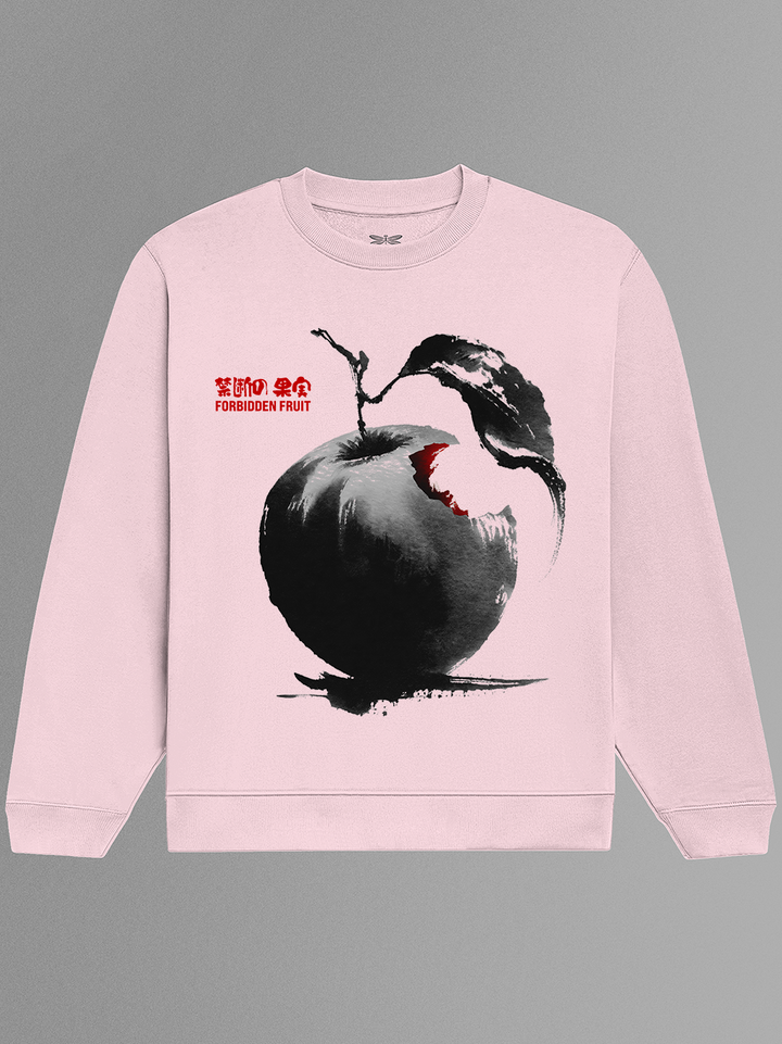 Product features a solitary ink-brushed apple with a single bite taken — stark, still, and heavy with meaning. The phrase “禁断の果実” (Forbidden Fruit) nods to temptation, desire, and the irreversible pull of the unknown. A crimson wound contrasts the quiet sumi-e texture, turning the fruit into both symbol and statement. Part of the Sumi-e Collection.
