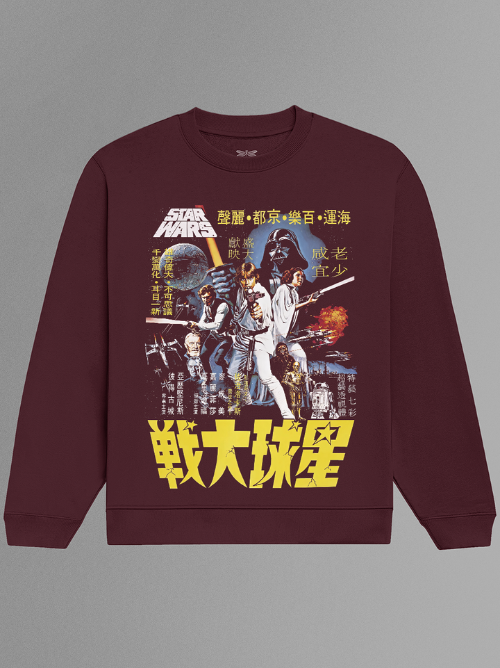 Product features the original Star Wars cast in a vintage Hong Kong-style movie poster, classic space opera explosions, and Darth Vader’s looming silhouette. A visual throwback to when Star Wars first hit global screens, this design channels pulp cinema flair with intergalactic rebellion. Part of the Cult Movies Collection.