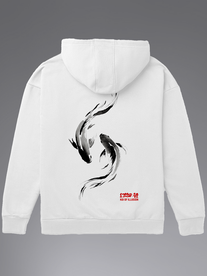 Product features two koi swimming in a fluid dance of ink, captured in sweeping Sumi-e brushwork that balances motion and stillness. Beneath the artwork, the phrase “幻影の鯉” (Koi of Illusion) evokes a dreamlike state — a moment where reality ripples and fades like water. Rooted in Japanese symbolism, the koi represents perseverance and transformation, rendered here in minimalist elegance. Part of the Sumi-e Collection.