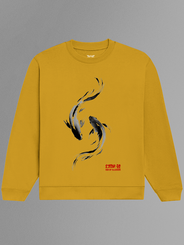 Product features two koi swimming in a fluid dance of ink, captured in sweeping Sumi-e brushwork that balances motion and stillness. Beneath the artwork, the phrase “幻影の鯉” (Koi of Illusion) evokes a dreamlike state — a moment where reality ripples and fades like water. Rooted in Japanese symbolism, the koi represents perseverance and transformation, rendered here in minimalist elegance. Part of the Sumi-e Collection.