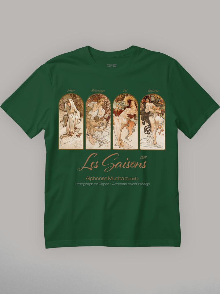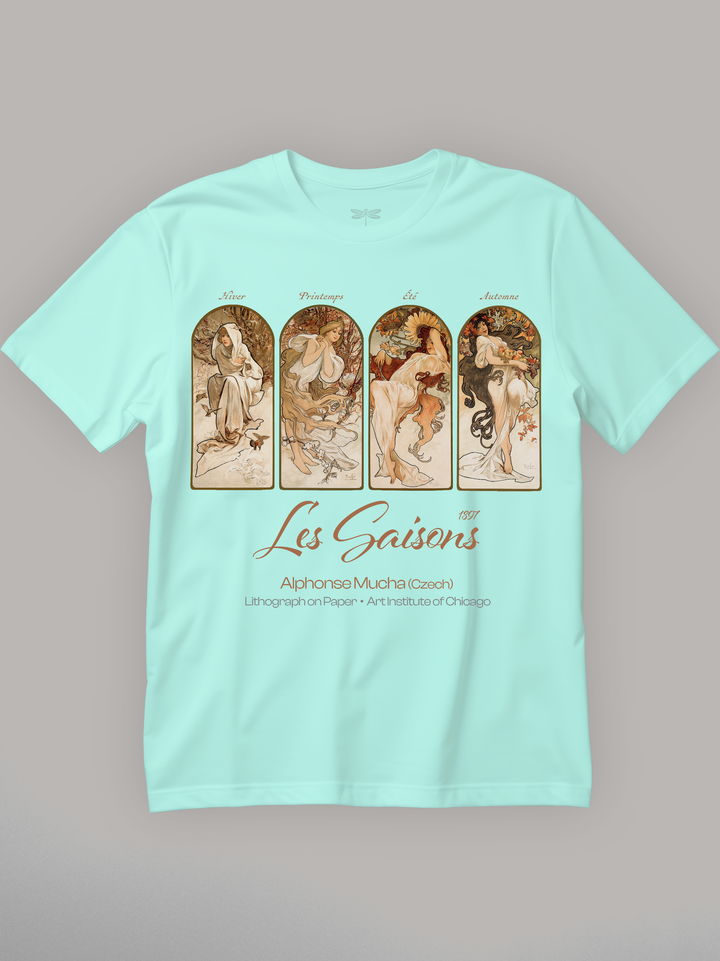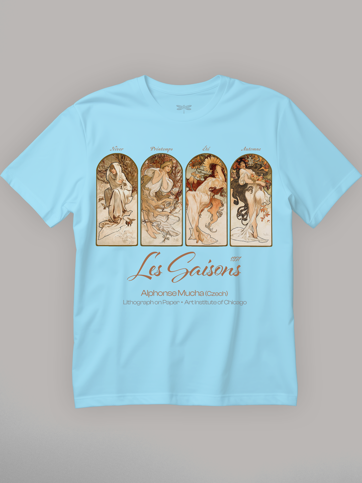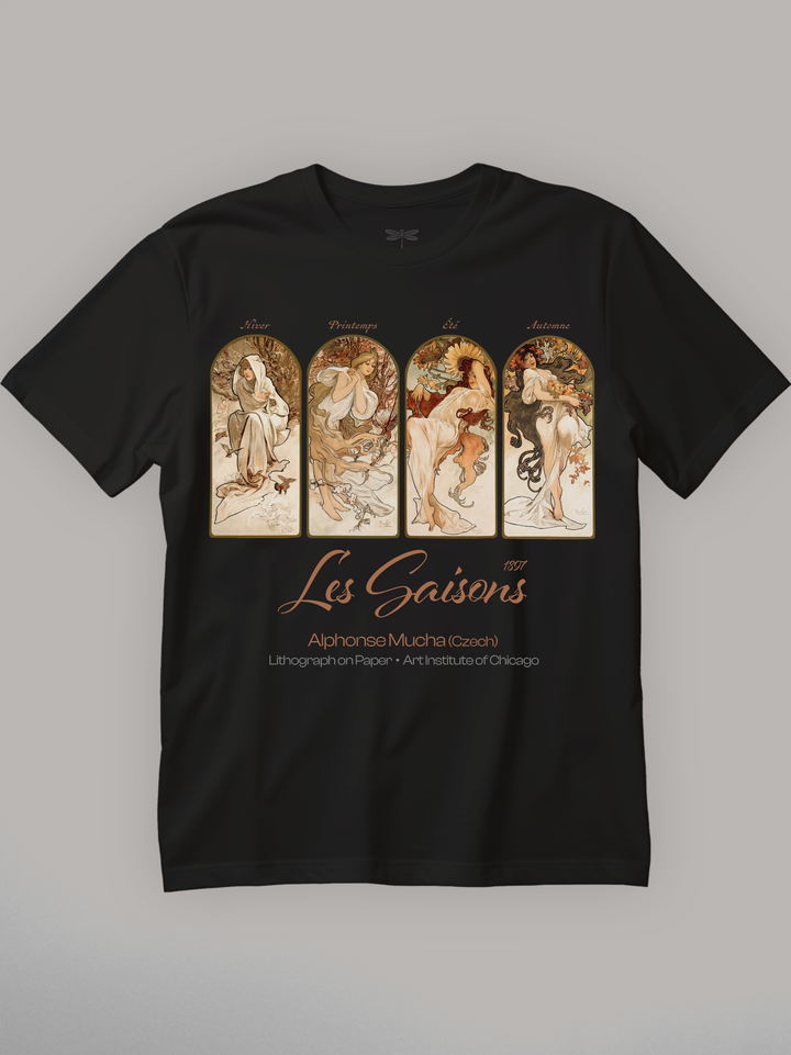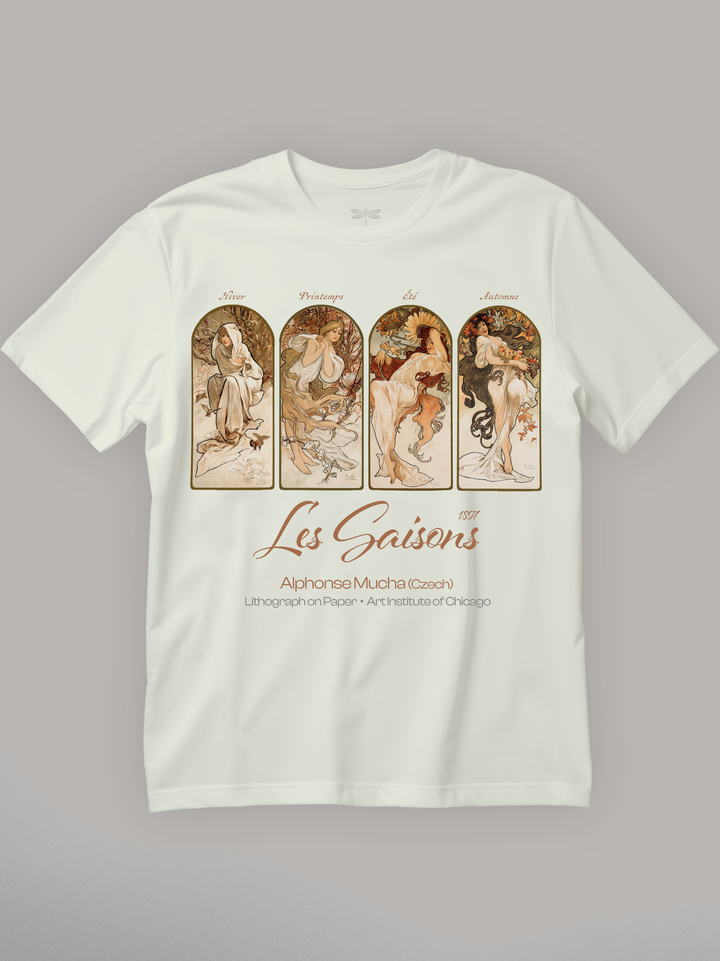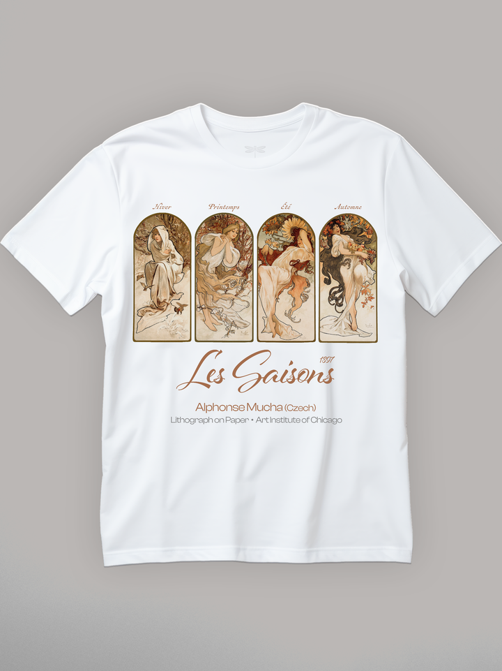 Product features Les Saisons (1897) by Alphonse Mucha, celebrated for his mastery of Art Nouveau and ethereal depictions of femininity. This four-panel composition personifies the seasons—Winter, Spring, Summer, and Autumn—each rendered with flowing forms, intricate detail, and warm organic tones that capture nature’s rhythm. The series became one of Mucha’s most iconic decorative works, symbolizing the harmony between nature and human beauty. Housed in The Art Institute of Chicago. Part of the Art Movement Collection.