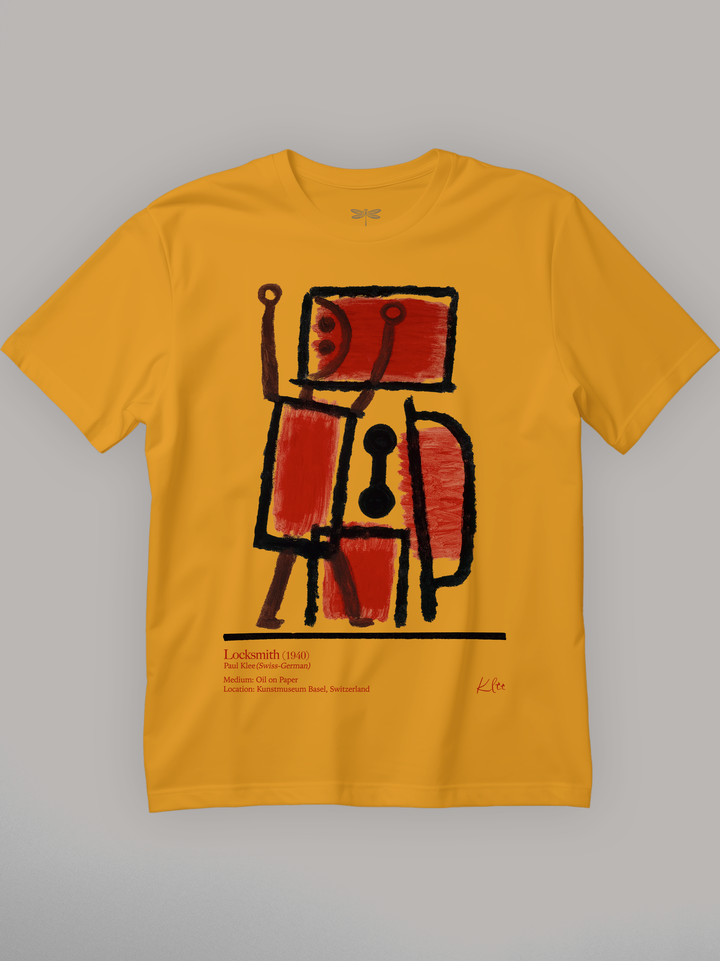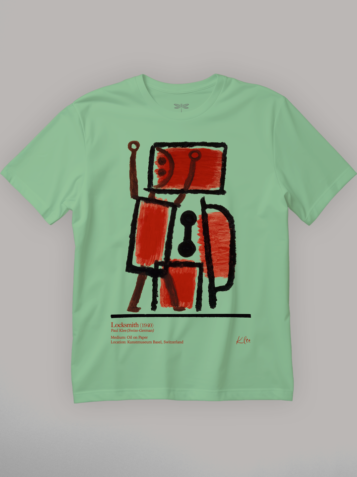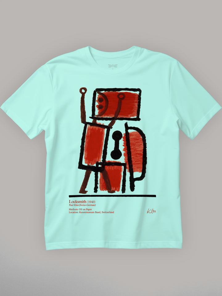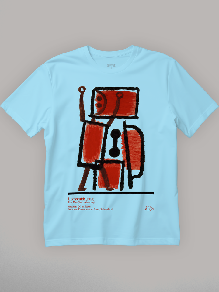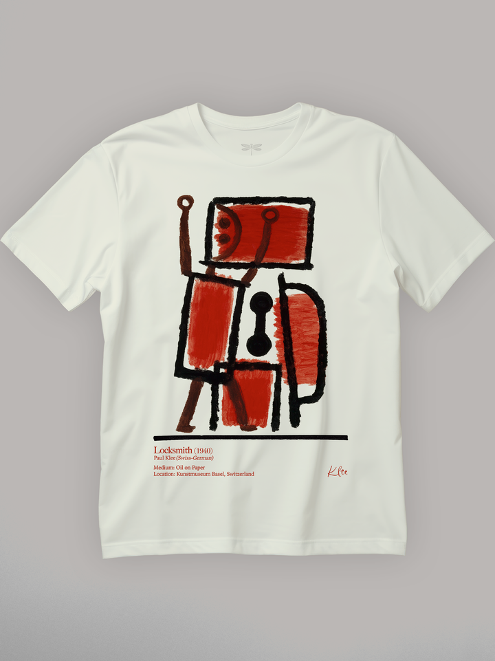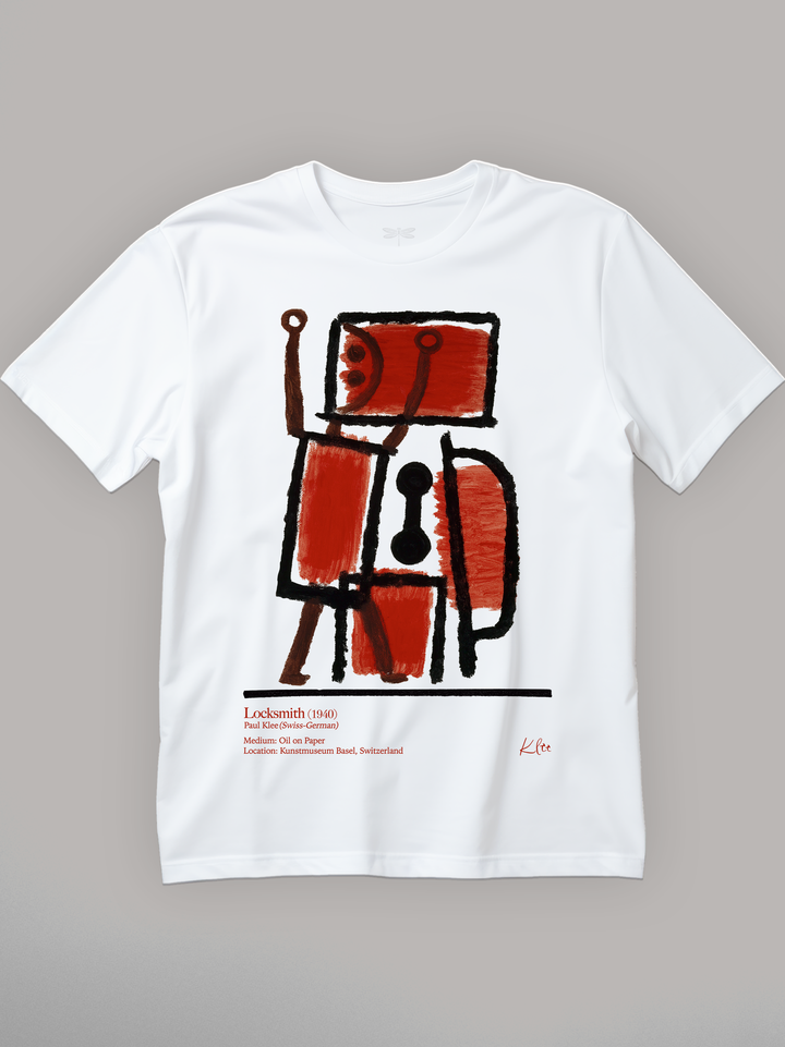 Product features Locksmith (1940) by Paul Klee, Swiss-German modernist known for blending abstraction, symbolism & geometry. Klee taught at the Bauhaus and explored color theory in depth. The painting uses bold shapes in red and black, evoking a symbolic “unlocking” motif. It originally comes from Kunstmuseum Basel, reflecting Klee’s close ties to Swiss art institutions. Presented in a refined museum-label design as part of the Art Movement Collection.