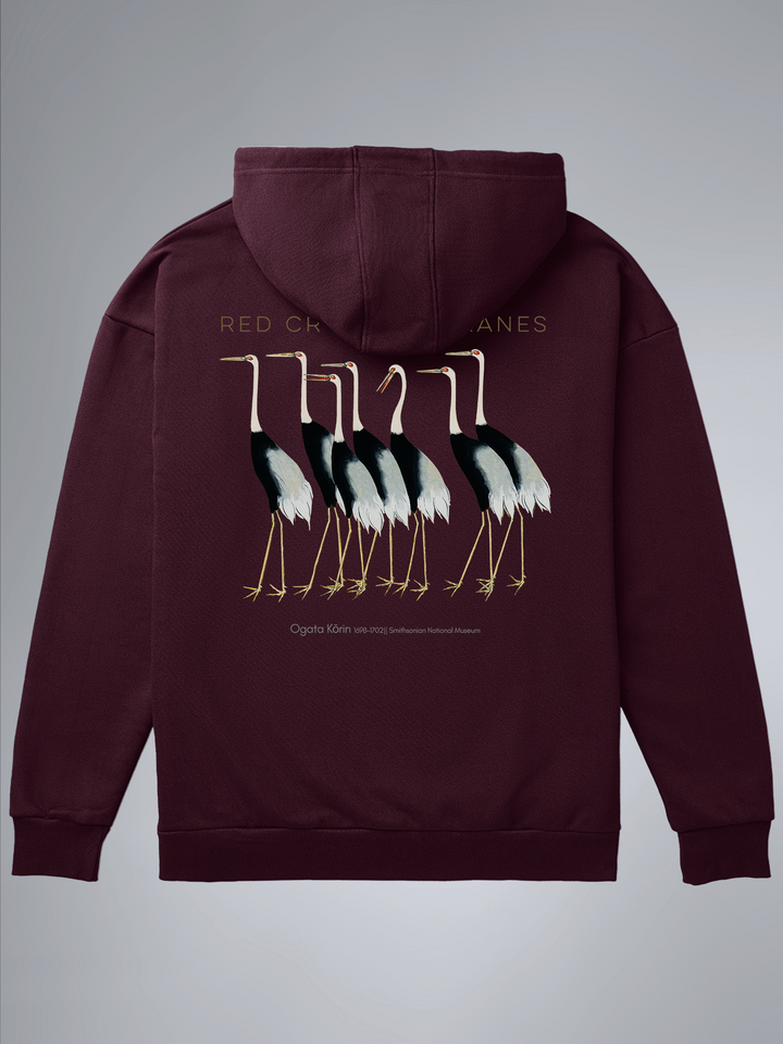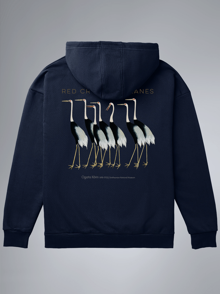 Product features Red Crowned Cranes (丹頂鶴) by Ogata Kōrin, c. 1698–1702. The artwork depicts a procession of cranes rendered with graceful symmetry and restrained color, their slender forms embodying longevity and peace. The minimal composition and rhythmic balance reflect the Ukiyo-e sensibility — where harmony, nature, and elegance converge in timeless form.