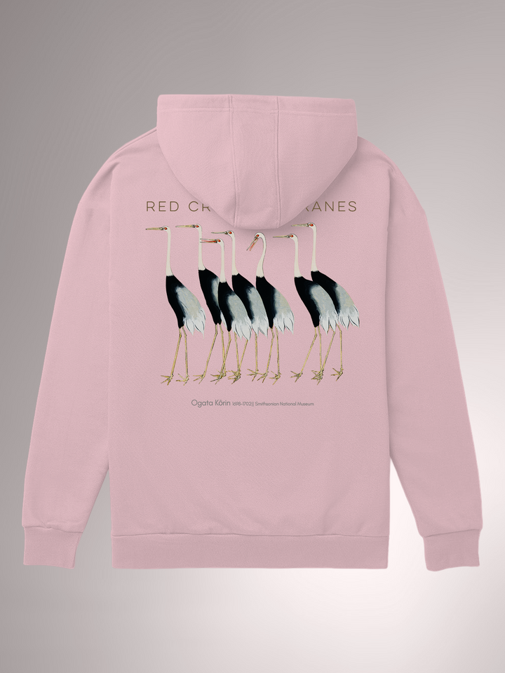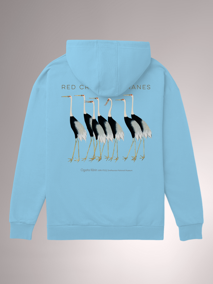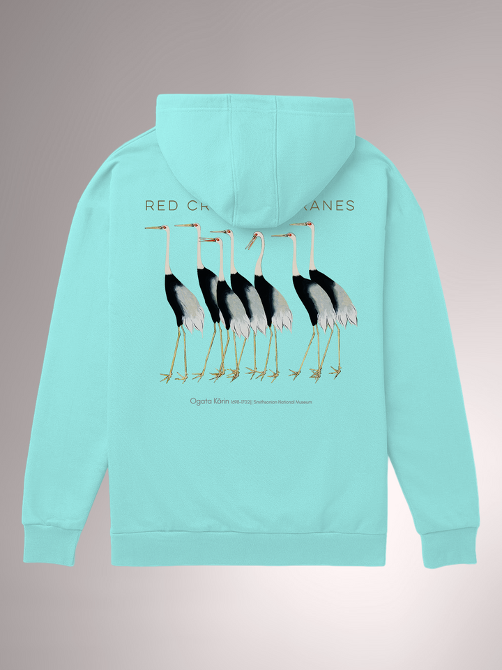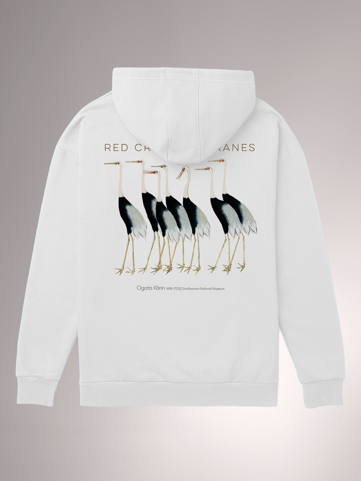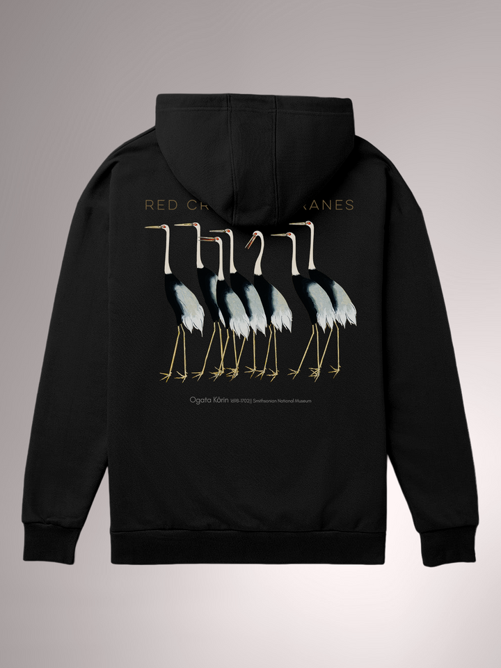 Product features Red Crowned Cranes (丹頂鶴) by Ogata Kōrin, c. 1698–1702. The artwork depicts a procession of cranes rendered with graceful symmetry and restrained color, their slender forms embodying longevity and peace. The minimal composition and rhythmic balance reflect the Ukiyo-e sensibility — where harmony, nature, and elegance converge in timeless form.