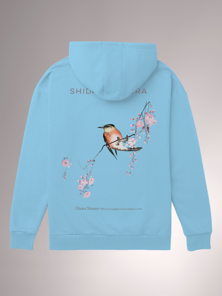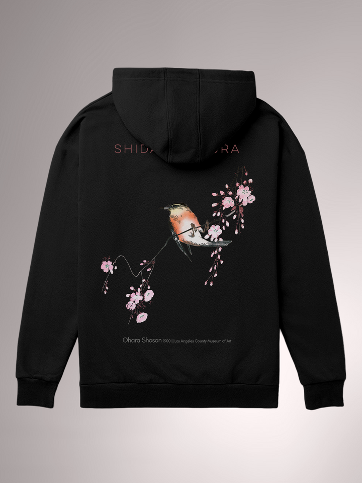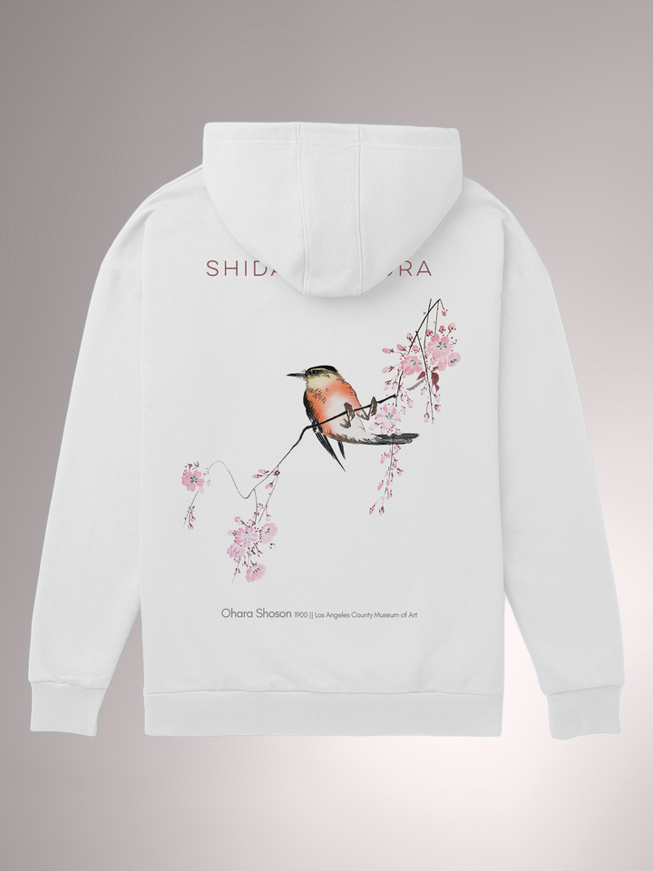 Product features Shidarezakura (枝垂桜) by Ohara Shōson, c. 1900. The print depicts a small bird resting on the drooping branches of a weeping cherry. Its delicate balance of form and color reflects the Ukiyo-e tradition — turning fleeting encounters with nature into enduring symbols of beauty and renewal.