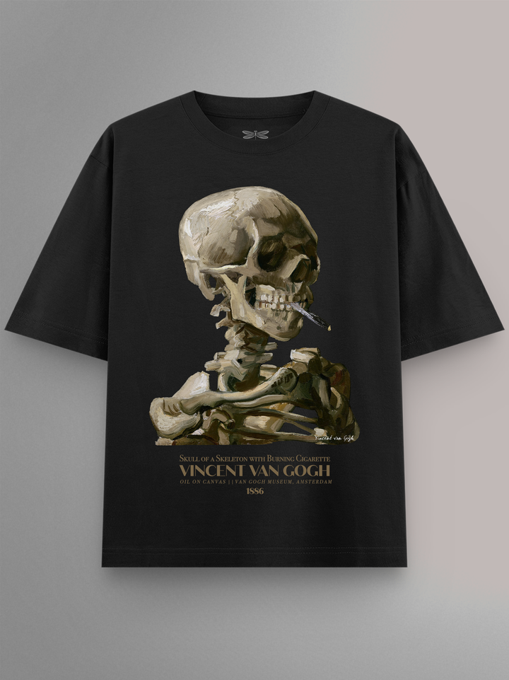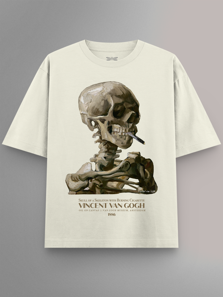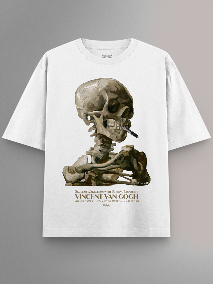 Product features Skull of a Skeleton with Burning Cigarette (c. 1885–86) by Vincent van Gogh, a daring early work created during his Antwerp years. Painted in somber tones, its stark anatomy is offset by the absurdity of a lit cigarette—an irreverent twist on academic skeleton studies. The piece (approx. 32×24.5 cm) resides at the Van Gogh Museum, Amsterdam. Part of the Art Movement Collection.