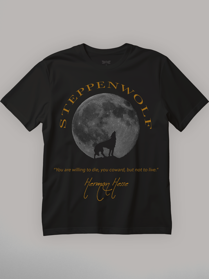 Product features Steppenwolf (1927) by Hermann Hesse, known for exploring the conflict between human reason and primal instinct through a deeply psychological lens. The novel follows Harry Haller, a man torn between intellect and wildness, seeking meaning beyond conformity and despair. The line “You are willing to die, you coward, but not to live.” captures Hesse’s challenge to embrace life’s chaos rather than retreat from it. Part of the Counterculture Books collection.