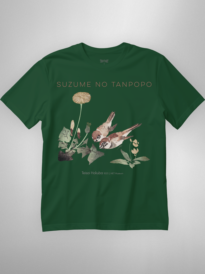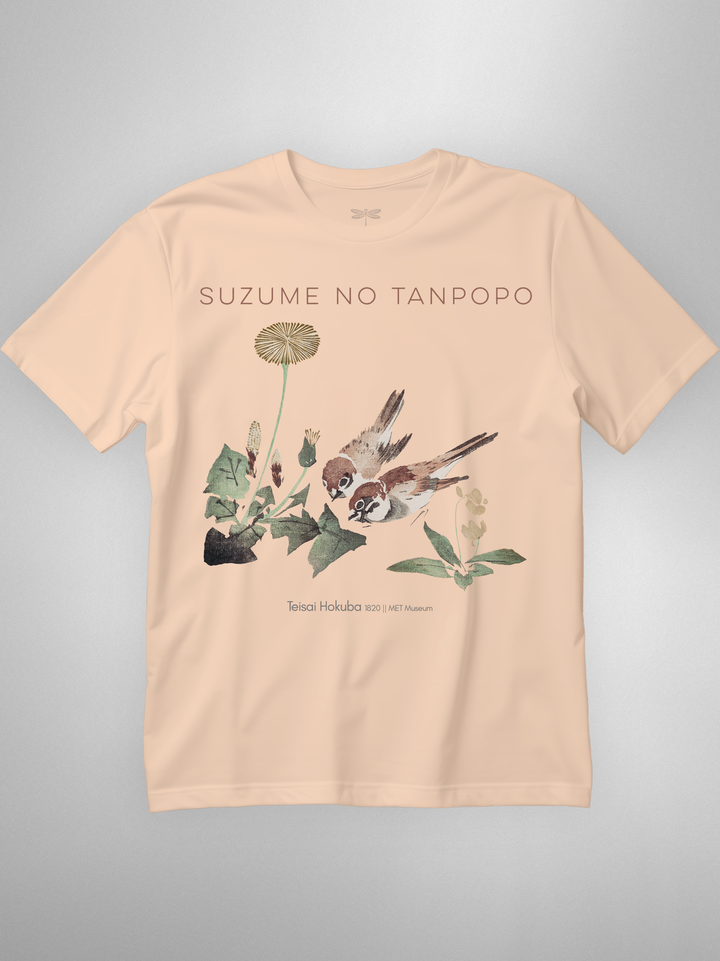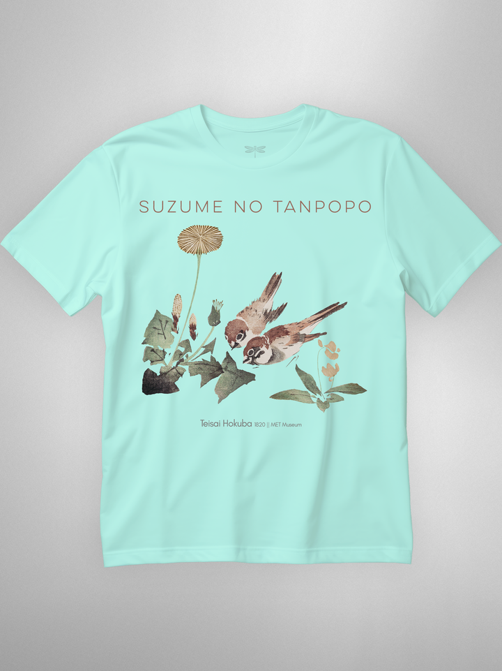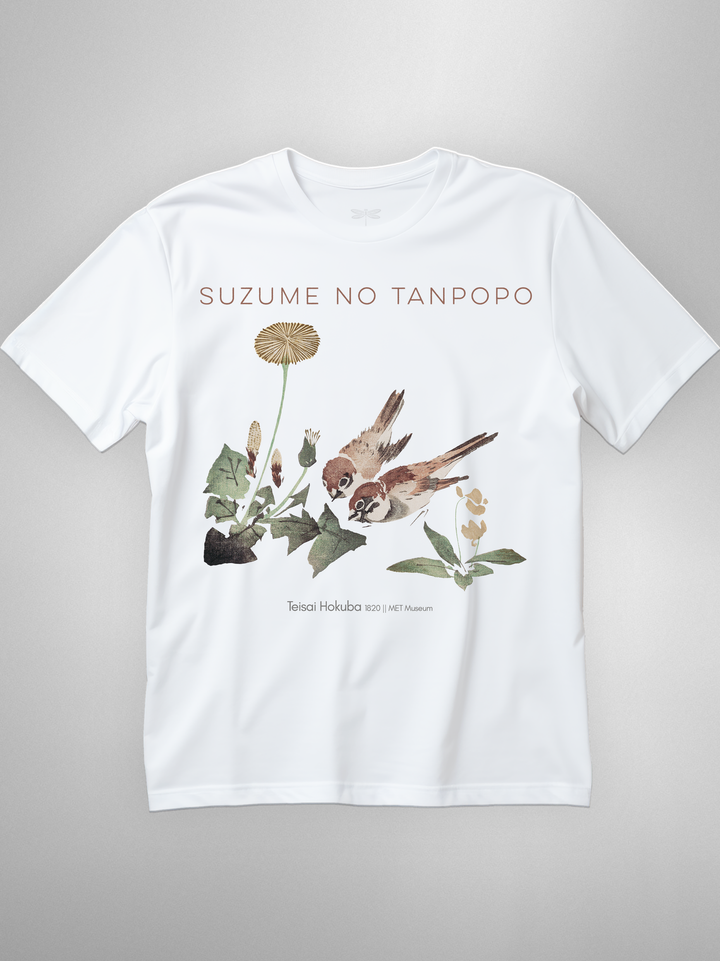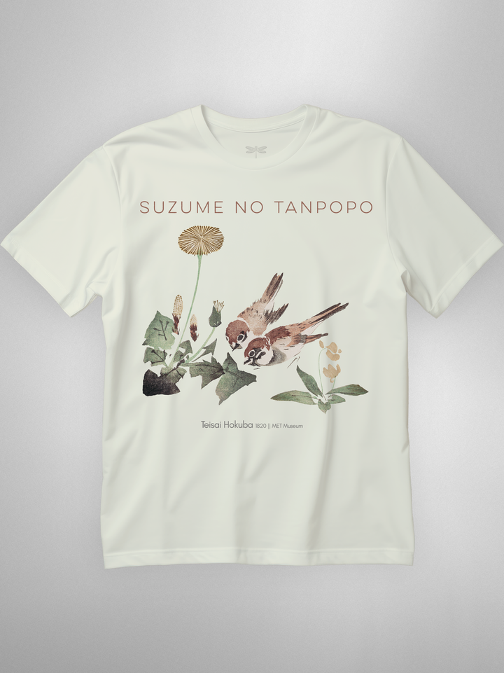 Product features Suzume no Tanpopo (雀とたんぽぽ) by Teisai Hokuba, c. 1820. The print depicts two sparrows nestled among dandelions, a delicate scene from the Spring Rain Collection (Harusame shū). Its subtle tones and seasonal detail embody the Ukiyo-e ideal of finding beauty in the ordinary.