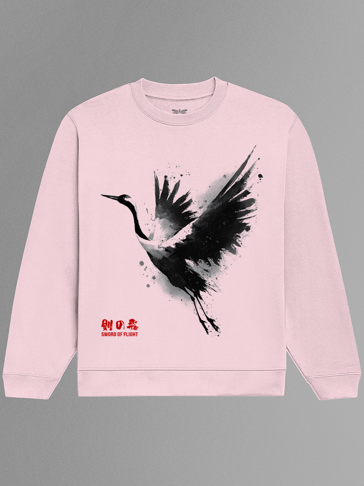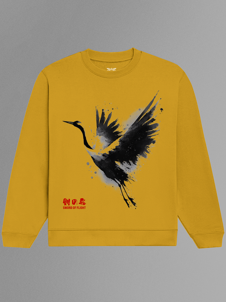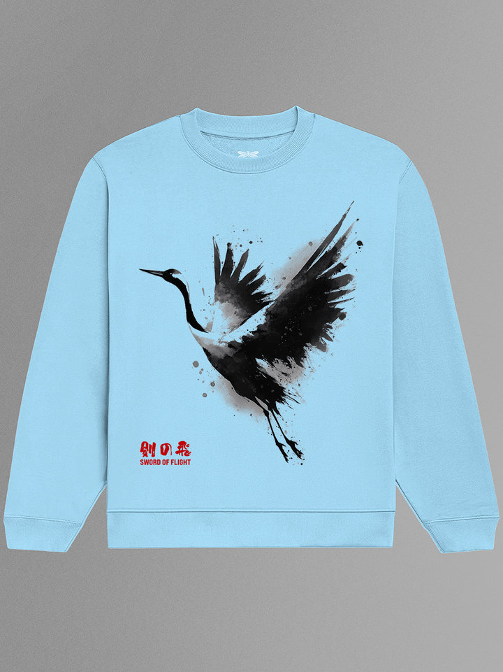Product features a soaring crane captured in an explosive burst of ink, wings slicing upward like a drawn blade. The phrase “剣の飛” (Sword of Flight) evokes elegance with edge — flight not as escape, but as an act of power. A tribute to freedom, sharp intent, and the art of movement. Part of the Sumi-e Collection.