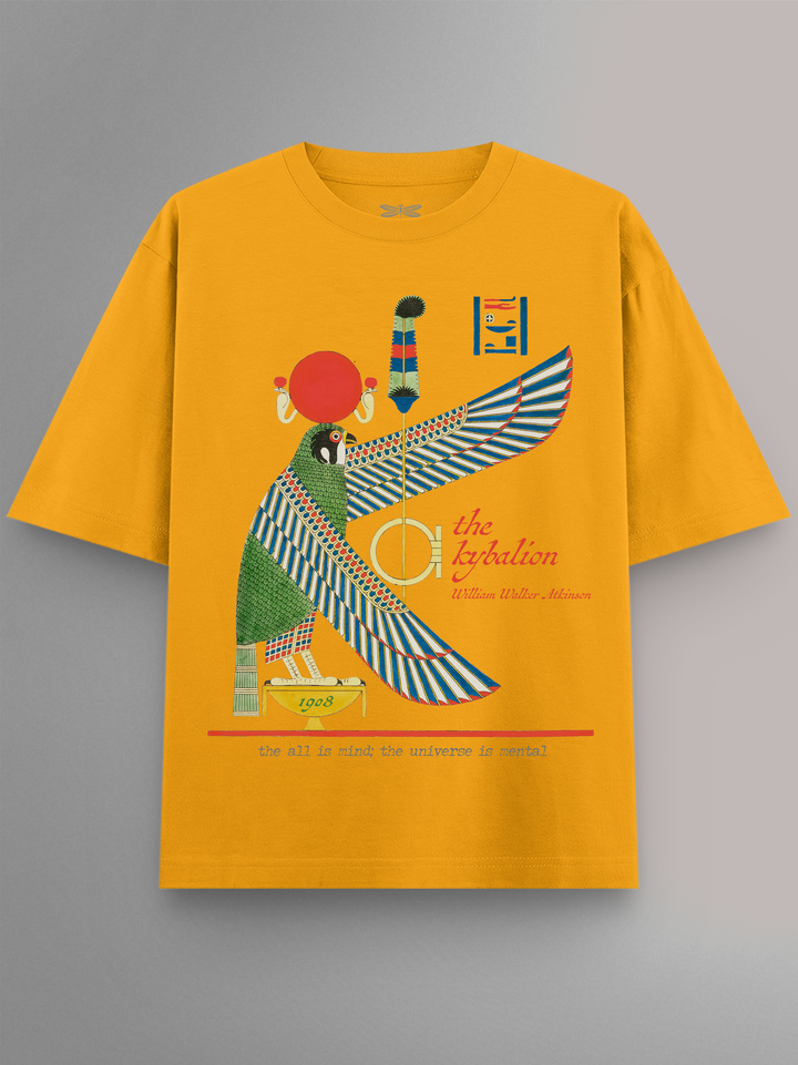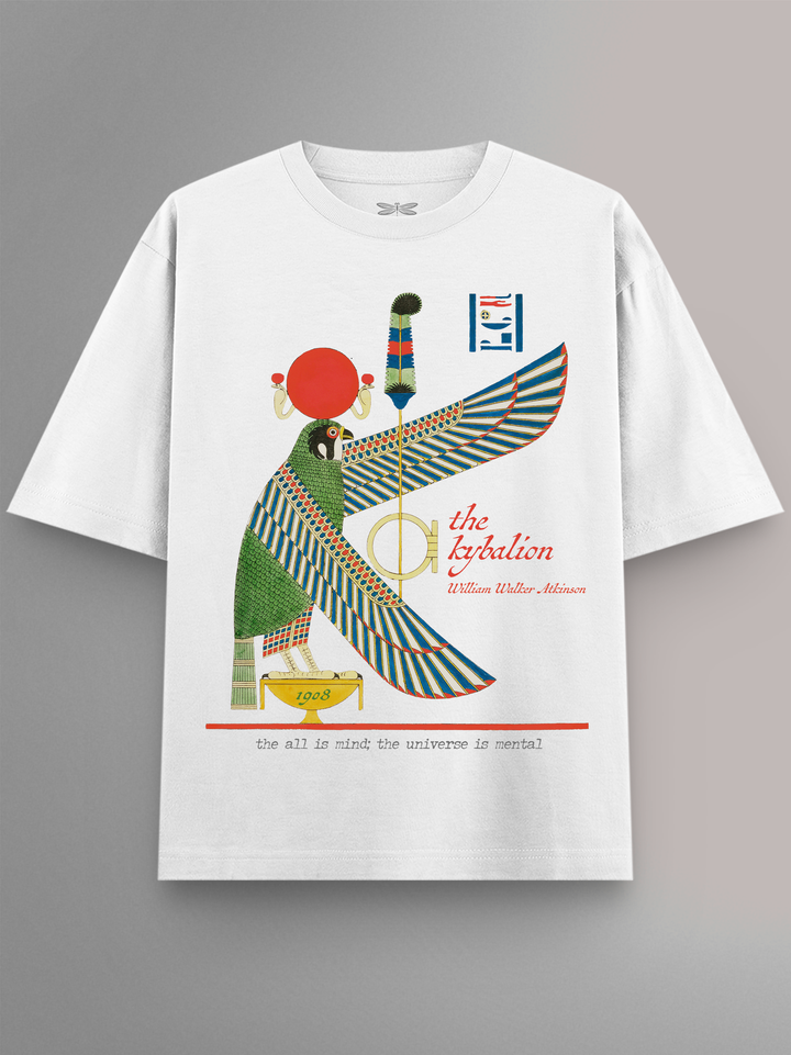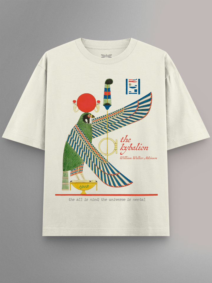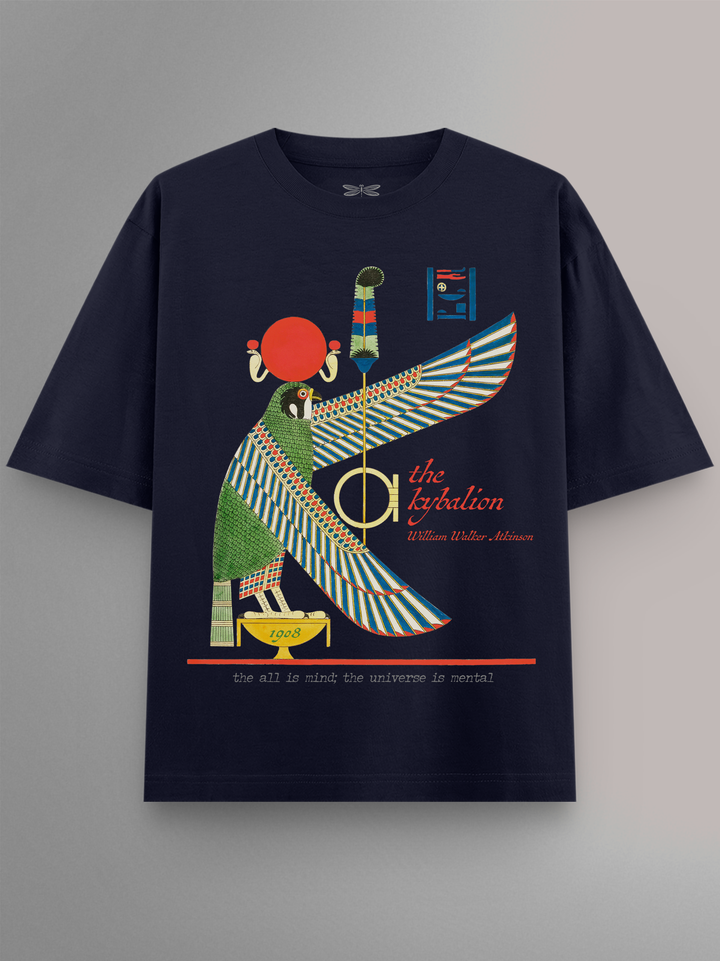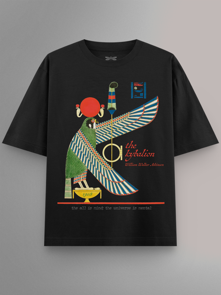 Product features an Egyptian-inspired motif of Horus, symbolizing divine vision and universal balance, inspired by The Kybalion (1908) by William Walker Atkinson. Incorporates the Hermetic maxim “The All is Mind; the Universe is Mental”, combined with geometric symmetry and vivid primary tones that echo the book’s exploration of hidden cosmic laws. Part of the Counterculture Books Collection.
