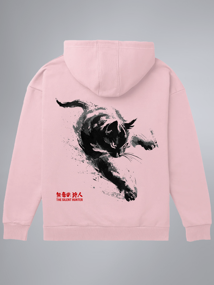 Product features a black cat mid-pounce, its form blurred by speed and shadow — brought to life through bold, textured Sumi-e strokes. The phrase “無音の狩人” (The Silent Hunter) reflects a predator’s precision: quiet, focused, and unstoppable. A tribute to instinct, elegance, and the art of striking without warning. Part of the Sumi-e Collection.