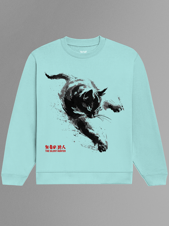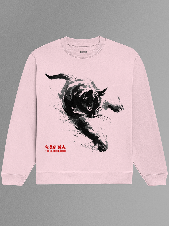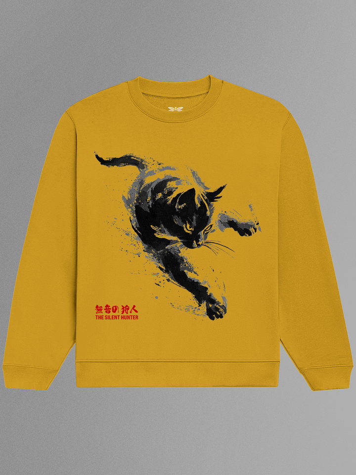 Product features a black cat mid-pounce, its form blurred by speed and shadow — brought to life through bold, textured Sumi-e strokes. The phrase “無音の狩人” (The Silent Hunter) reflects a predator’s precision: quiet, focused, and unstoppable. A tribute to instinct, elegance, and the art of striking without warning. Part of the Sumi-e Collection.
